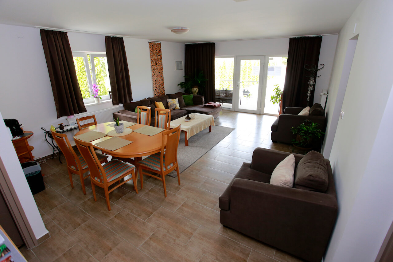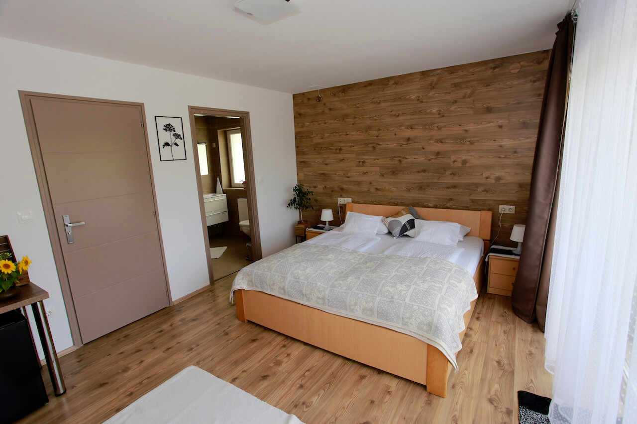 Az újonnan épült szálláshelyen 5 db franciaágyas, saját fürdőszobás, nagy teraszos szoba áll vendégeink rendelkezésére.